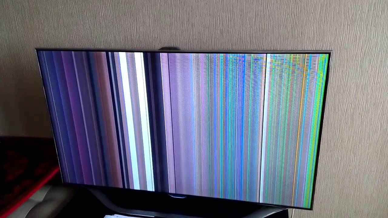 Признаки очевидны: видимые физические повреждения (трещины, «паутина» от удара), черные или цветные кляксы, яркие неисчезающие полосы на месте удара. Часто такая поломка возникает после падения ТВ, удара по экрану или попадания внутрь корпуса жидкости.