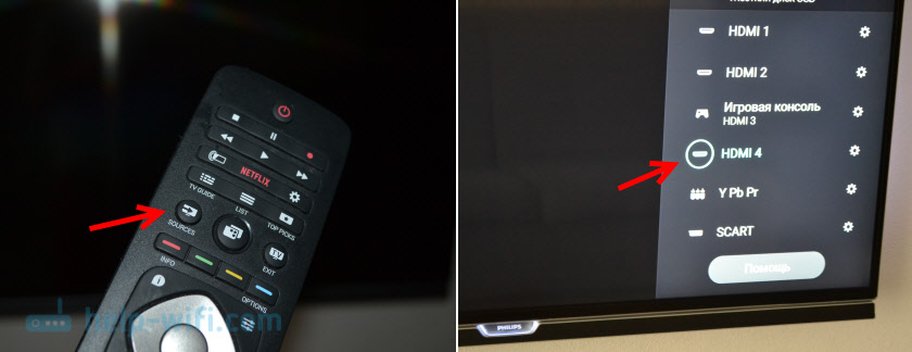 Нажмите кнопку «Source» на пульте управления, в появившемся меню выберите нужный источник стрелками и подтвердите выбор кнопкой «OK». Если используете приставку — выберите соответствующий HDMI-порт, для эфирного ТВ — «Антенна/Кабель». При первом подключении нового устройства телевизор обычно автоматически переключается на активный вход.